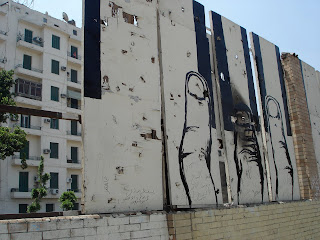 This mural recently appeared in Cairo a few blocks away from Tahrir Square. On a wall scarred by street fights--punctured with bullet holes and charred by molatov cocktails--a piano has emerged. This is reminiscent of a slogan that appeared on the walls of Paris during the uprising in May '68--"Sous les pavés, la plage." (Under the paving stones, the beach.)--and speaks to the spirit of collective optimism of the Egyptian revolution, which toppled a tyrant and is creatively reclaiming the streets.